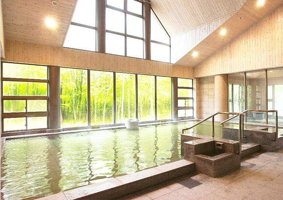 森林大浴場や露天風呂、フィンランドサウナも備えた牧歌の里 温泉「温泉 牧華」で汗を流す。