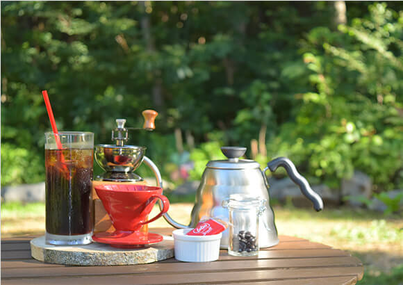 朝食の後はOrk cafeでのんびり。森を眺めながら、スタッフこだわりのドリップコーヒーを満喫。