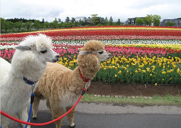 「牧歌の里」内のレストランで早めのランチ。牧歌の里では動物とのふれあいや各種体験もできる。
