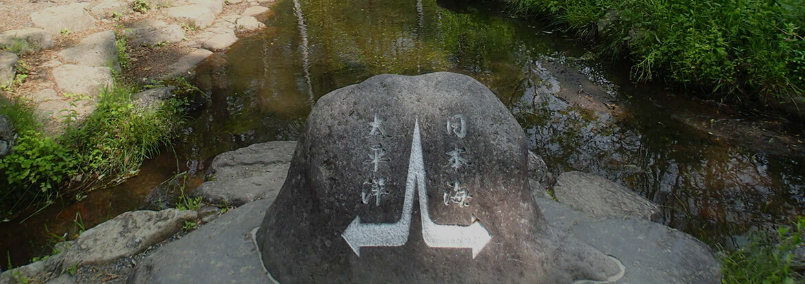 大日ヶ岳からの水が太平洋と日本海に分かれて流れていく様子を見られる。季節の花や紅葉も楽しめる。